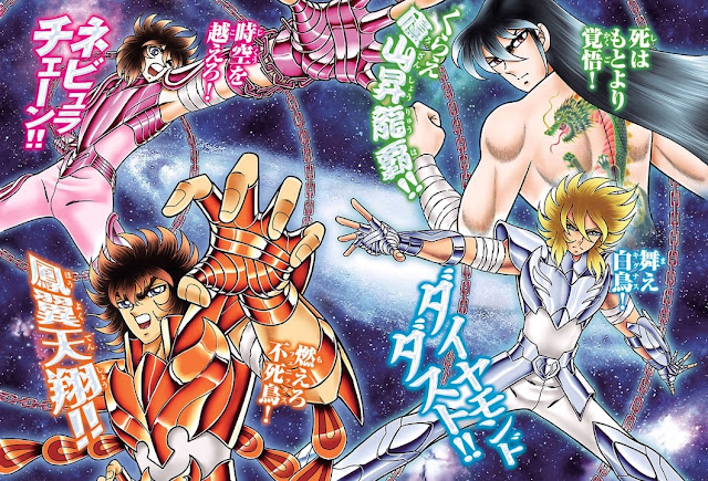 Pois bem, lá no Japão o titio Kurumada cansou de vagabundear (não sei como, eu nunca me canso) e decidiu lançar uma nova temporada de 7 capítulos da sua única mais sucedida série, Cavaleiros do Zodíaco - Next Dimension, que mostra os 4 Cavaleiros de Bronze principais sendo arrastados pela Saori numa viagem no tempo só pra salvar a vida do Seiya, que tá em coma com uma flecha dourada espada invisível no peito que vai mata-lo em 12h 3 dias, e que o único jeito de salva-lo séria destruir a Espada de Hades antes mesmo dessa ferir o Seiya.