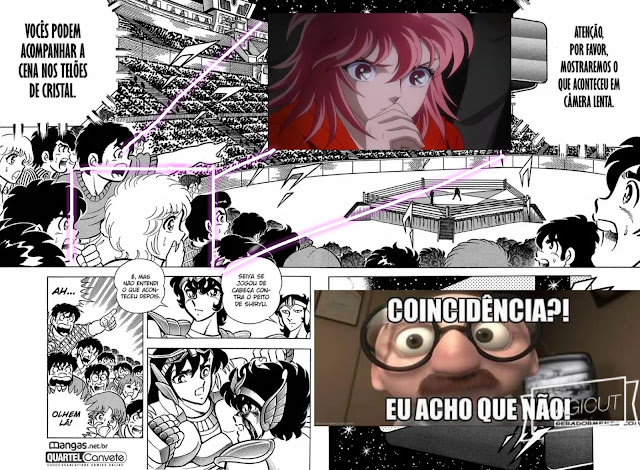 Lembra como nós reclamavamos que o Kurumada devia copiar mais os autores dos spin-offs. Aqui ele copia mesmo uma das ideias de lá, botando a culpa da loucura do Saga (cuja segunda personalidade seria um Lêmur, espírito humano que persegue os vivos para deixa-los loucos), como sendo fruto da manipulação de um Deus.